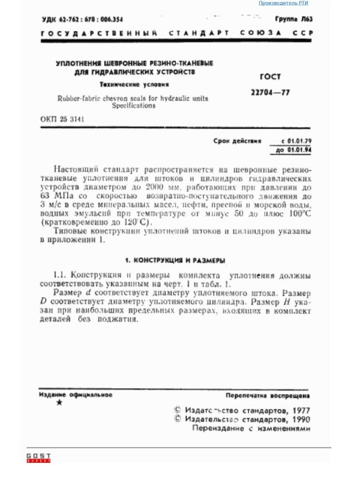 | Название английское: | Rubber-fabric chevron seals for hydraulic units. Specifications |